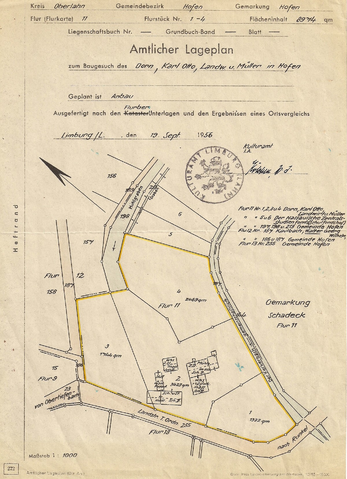 1710 Am 3. September 1710 stellt Friedrich Wilhelm Müller aus Schadeck einen Antrag "in der Herrschaft Runkel untig Hofen einen neuen Mühlenbau" errichten zu dürfen.